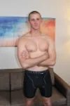 Hunky Justin jerks off his big thick throbbing cock.