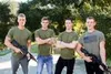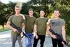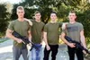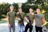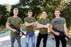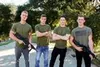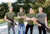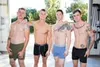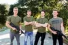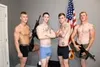 Four handsome troopers engage in bareback army fucking