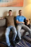 Horny Chase pounds her hard cock deep into Scott warm ass.