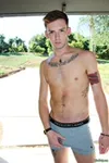 Wade Clark kicks back on the bed and slowly strokes his cock