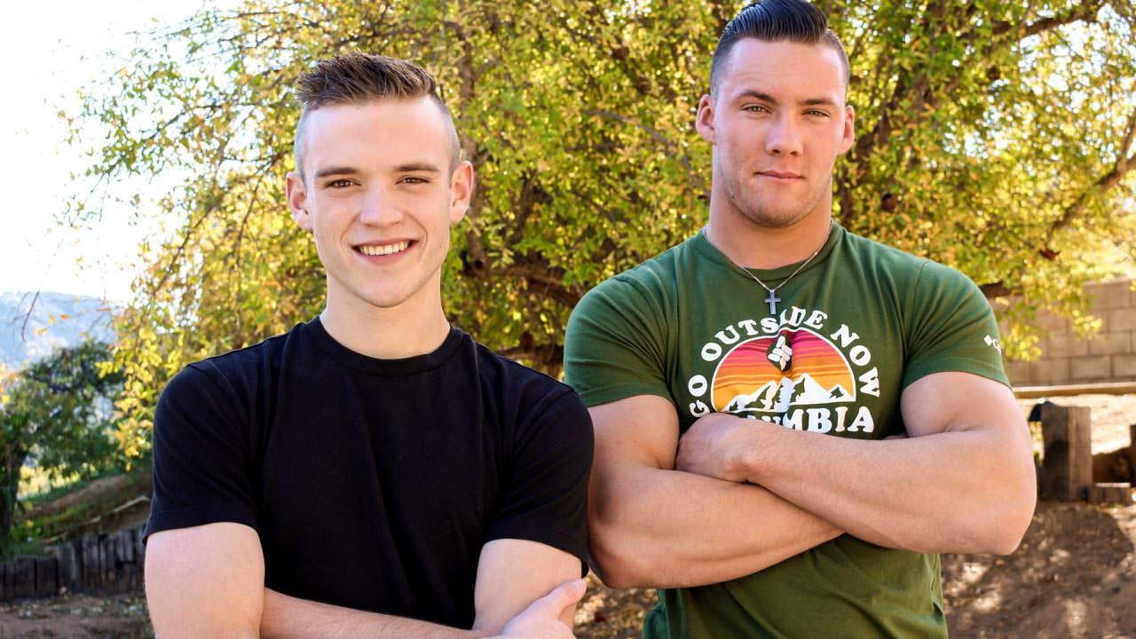 Once Scott Finn is done introducing the two they lie back on the bed and start rubbing their cocks. Scott asks Jesse if it's ok for him to help him out some and Jesse is all game. Scott grabs his hard cock and puts every inch of it in his eager wet mouth. He takes it balls deep gagging on it making Jesse Kovac tilt his head back in bliss. Jesse is enjoying the great blow job but he wants to try blowing his first cock and Scott is ready for it. Jesse slowly wraps his virgin lips around Scott's throbbing hard dick and takes every inch down his throat. The look on Scott's face means that Jesse is doing a fantastic job at sucking cock for his first time. Jesse bends Scott's tight little ass over and pushes his hard cock into the tight hole making Scott quiver with delight. Jesse loves the way his ass feels and begins to thrust harder and deeper the more comfortable he becomes. Jesse bends his ass over for Scott and Scott eases his hard cock into his tight virgin ass. Scott pushes in balls deep and once Jesse releases his breath Scott begins to thrust faster. Scott strokes Jesse as he fucks him with a great pace until Jesse shoots his load all over his ripped chest and once Scott sees that he pulls his cock out and strokes his load all over Jesse's cum filled chest.