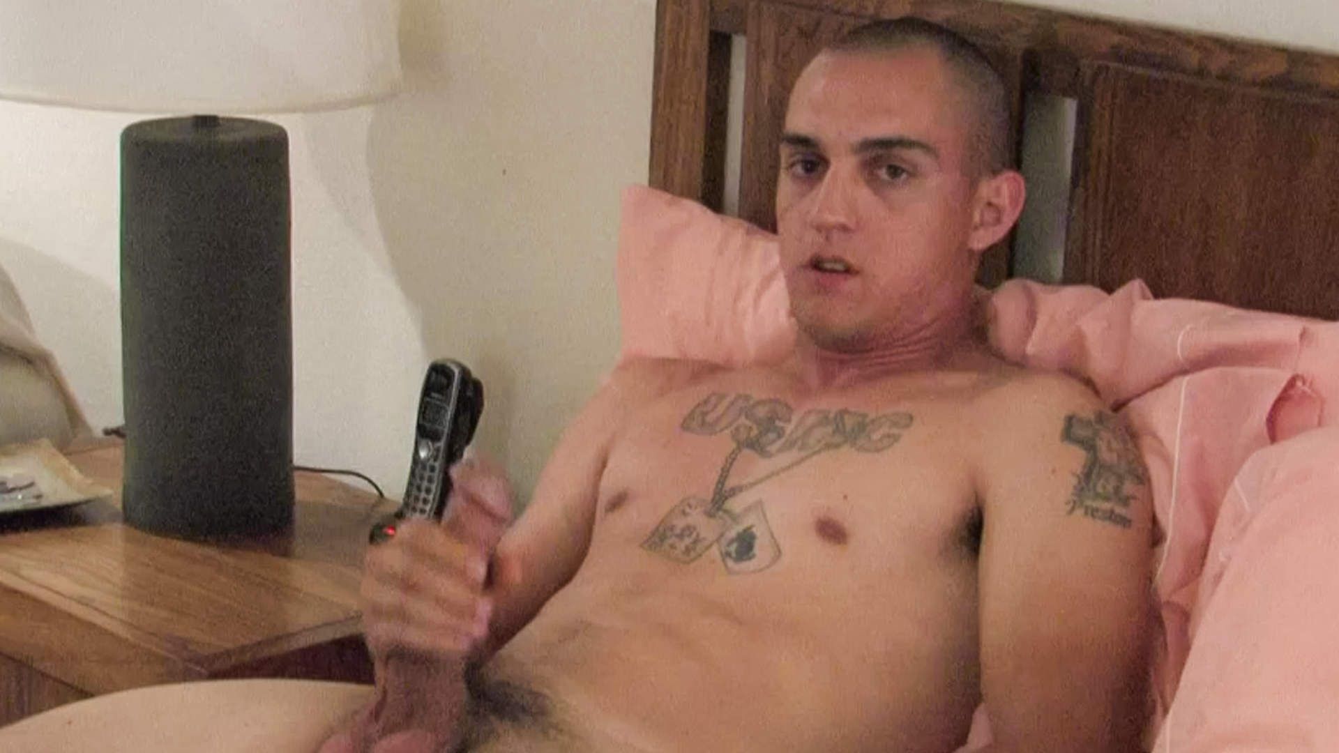 He also loves to show off and has no problems stripping right down to the basics. I leave Ace to his own devices and by the time I come back you can see the chub in his boxers and once he pulls it out, it's a nice fat cock that had me wanting to fall right down on my knees and service it. He strokes it slow and deliberately as those huge balls just bounce in the wind. He's sporting some huge low hangers and they match that fat cock. You'll want both of them down your throat as this hot Marine teases the fuck out of you.