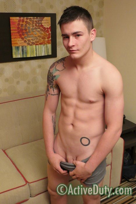 By the time we finish with his tattoos his cock is already hard in his boxers as he squeezes it and tugs at it, teasing us with an outline. Once he pulls it out and starts stroking the first thing I notice is the cock piercing he is sporting. I'm normally not a fan of these but Czyz is so cute and adorable that I really don't notice it much. I'm much more into that pretty face. He starts out stroking his cock nice and slow and I zoom in on that adorable mug for a bit. He's not shy in the least and you can tell he's enjoying being the center of attention. He beats it for a bit and then turns around to show us that beautiful little bubble butt he's sporting. Such a nice treat on an already delicious dude.