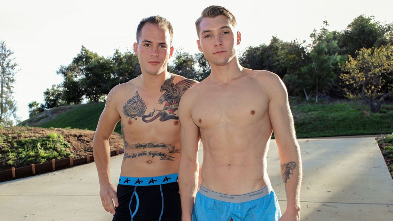 Elye Black is the first to begin sucking some hard cock and he takes Richard Buldger's fat dick all the way down his throat. He loves to gag on cock and Richard face fucks him good and hard. Richard wants some dick in his mouth as well so the boys switch it up and Elye lets him wrap his warm wet mouth around his throbbing cock. Elye was the first to suck but this time Richard is the first to get his dick in that tight sweet ass of Elye's. Richard slowly pushes into him spreading his tight ass wide open and slowly Elye's ass relaxes and takes all the girth and length. Once all the way in Richard pounds that tight ass while Elye strokes his own dick. Elye can only take his ass being fucked for so long so Richard offers his tight hole up and bends over for him. Elye slowly pushes in with his long hard cock making Richard squirm with pleasure. Elye takes that ass to town fucking Richard all over the bedroom. Elye's balls are full and he pulls his bare cock out of Richard and shoots his warm load all over Richards cock as he strokes it. Richard uses Elye's cum as lube as he strokes his nut out all over himself.