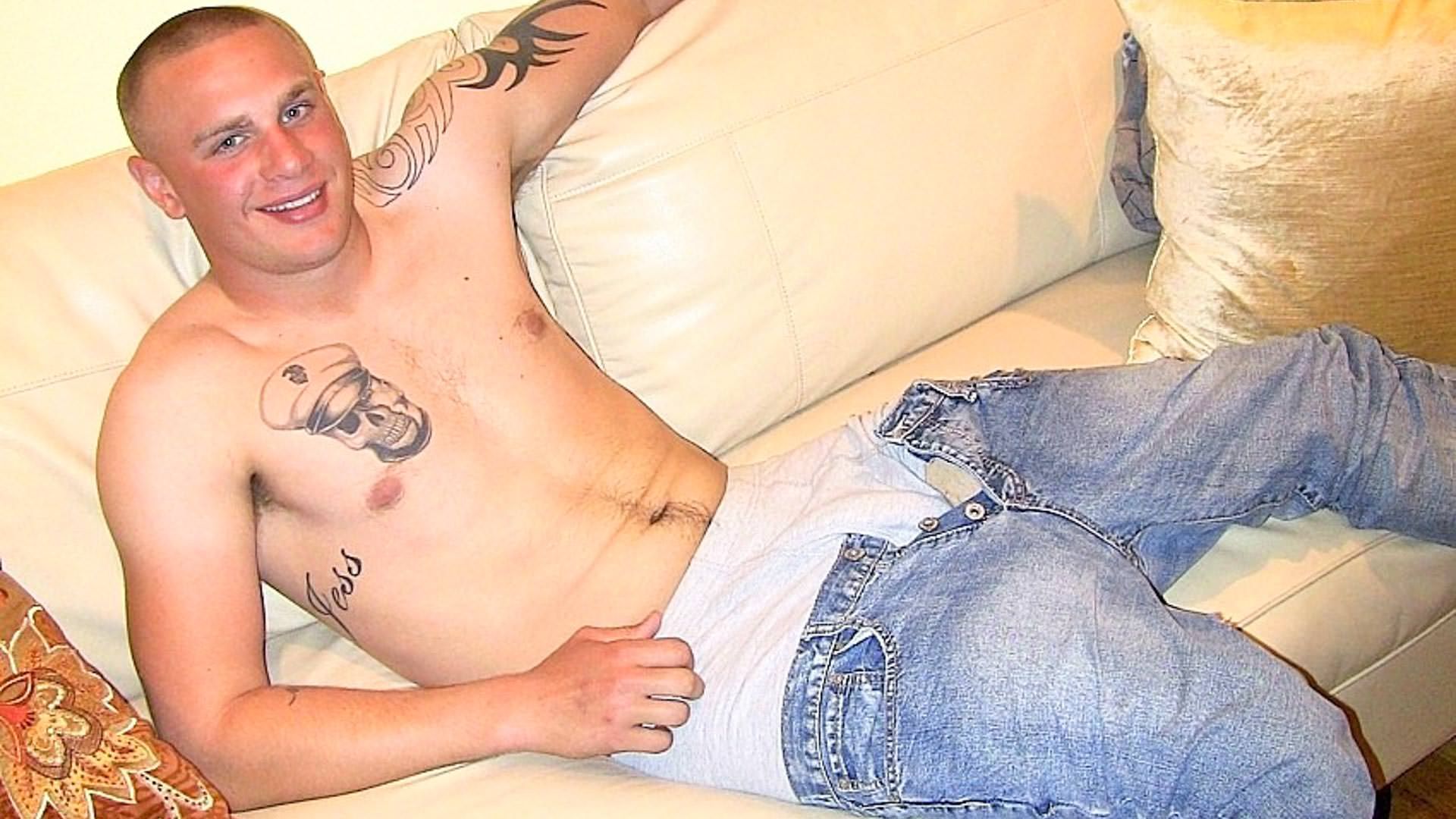 Guy is packing some serious fucking meat it's at least 8.5 inches long and delicious. He's 21-years old, stands 5' 11' tall and weighs in at around 190 lbs. He played lots of football in high school and he's sporting some of the sexiest thighs I've seen in awhile. As the video progresses, Guy gets much more comfortable showing off for the camera and I'm eventually able to get him to show off that beautiful ass for us and he lets us get a nice, long look at it. Then he's back to stroking that huge cock of his and eventually blows a huge load all over the place. I could not get enough of this big, blonde-haired beauty and I followed him into the bathroom afterwards to watch him wash that big cock off in the sink. That smile of his will drive you wild and leave you wanting more. And more is what we're gonna get off Guy because he's been a regular around my place ever since.