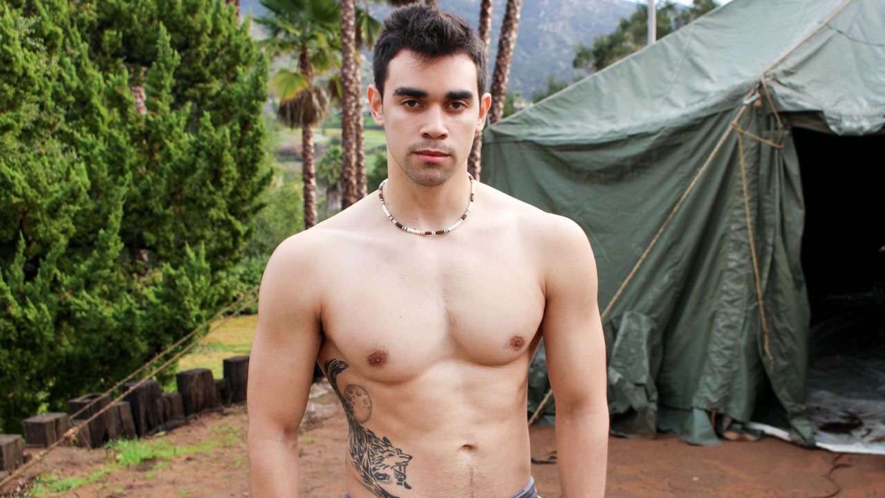 Kilo Wolf starts off nice and slow as he takes his clothes off revealing his smooth almost perfect skin. He lies down on the bed making himself more comfortable as he gets his cock harder and harder. Once he is rock hard he sits on the edge of the bed and we see that his cock is pierced right in the middle of his shaft. That piercing looks like it must of hurt but by the looks of it Kilo is having a great time with it as he strokes his hard fat cock. The shine from the piercing reveals the thickness as he slides his firm hands up and down his throbbing shaft. Kilo lies back down on the bed stroking his dick faster and faster building up his firm sexy balls until he can't hold his nut back and he shoots a thick creamy load all over himself. He continues stroking his cock while using his cum as lube as this new soldier finishes his first day here at AD.