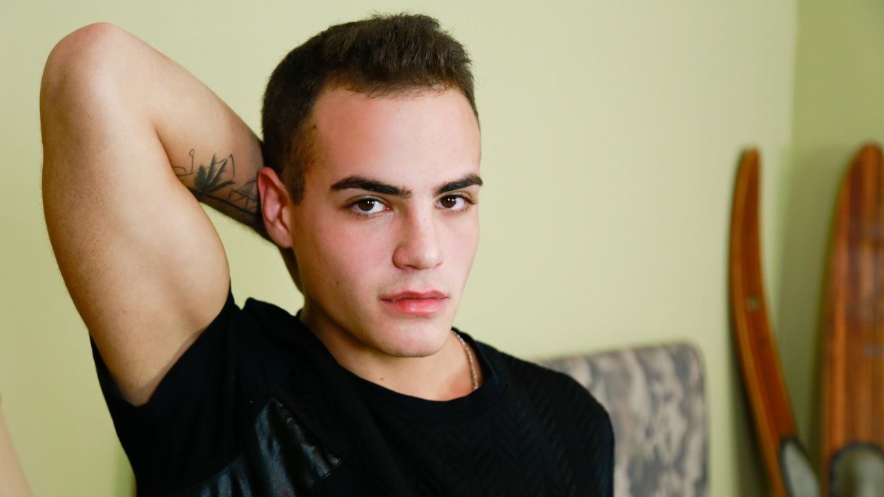 Dirk talks with Luke Johnson making him comfortable before his clothes come off. When the time is right Dirk tells him to get naked and tosses the lube at him. Luke has been waiting for this moment and gladly sits down in the chair and begins to get his cock hard. He lubes up and within seconds his dick is rock hard and he's stroking every inch of us all to see. He has a modest hairy body with some tattoos and his accent is extremely sexy. You can see the lube shine off his throbbing cock as he masturbates. As Luke becomes lost in the moment he begins to talk dirty while moaning and groaning. Dirk has him get on the bed and he continues to stroke his big hard dick until we tell him to bend over and show off his ass. Luke listens to every command and uses both hands to spread his virgin hole wide open and he even winks at us. Luke lies back down and spreads his legs so we can see his furry balls while strokes that hard dick. You can tell he is getting closer to nutting as his breath picks up and his moans become louder. Dirk tells him to let the nut out when he is ready and soon after Luke is jerking his cock fast and hard until he shoots streams of cum all over himself which even sprays his own face. Luke is amazed that he got his face and his chest is full of his sticky warm cum. Enjoy!