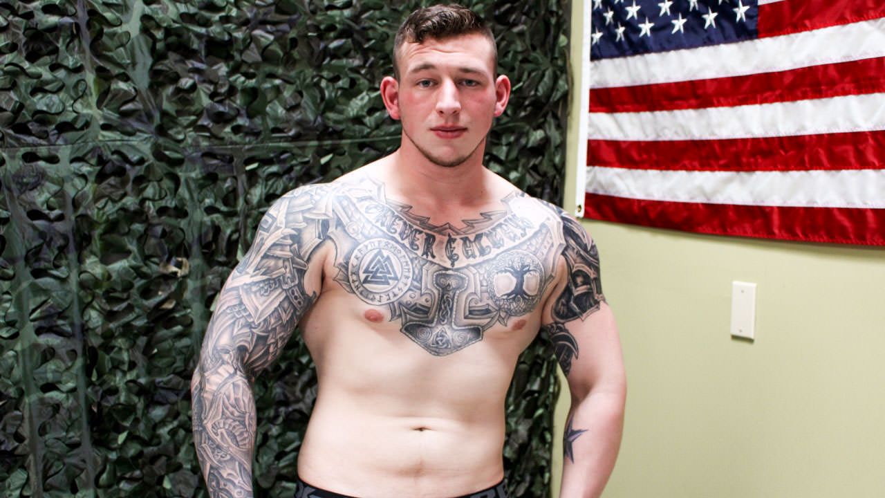 Maxx Guns releases his funs and shows off his sexy ink that is all across his chest. Maxx makes himself comfortable on our bed and begins stroking his cock. His cock is thick and shaved to perfection. He maybe quiet but he is focused on giving the best show possible for all to see. He loves to grab one of his balls while he strokes his cock. We love the creativity when it comes to masturbating. He stands tall showing us his very thick and firm thighs that are to die for. Maxx uses his guns some more as he slides his hands faster and faster up his thick shaft. You can tell he is getting close just by the intese look on his face and with a few more strokes of that sexy cock he shoots a thick load all over that sexy chest of his.