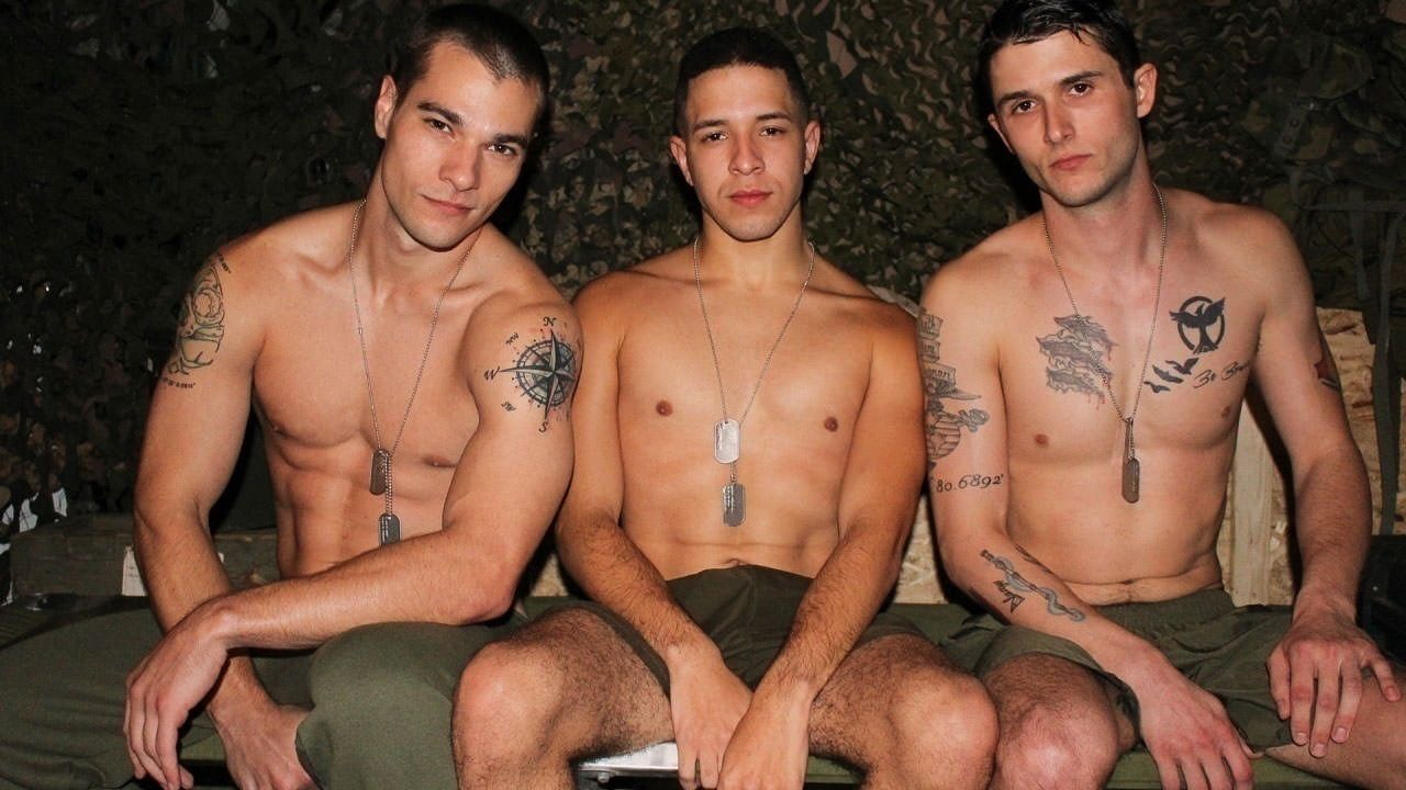 The guys get into an amazing three-way suck formation, where each soldier hits a nice stride, taking each other's erection deep down their throats. Eventually Princeton, the insatiable boy he is, switches gears to feasting on Phillip's tight, enticing ass.