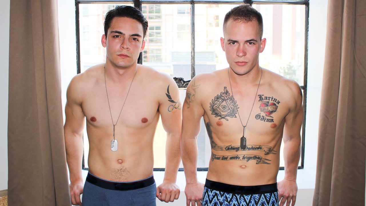 We got a sweet surprise for you today. We welcome Rix back to the war room and he did such a great job showcasing his skills in his solo that we brought him back as fast as we could so fast that his first scene is days away from going live. He will be with one of our newest vets Richard Buldger who has just a mere two scenes under his belt but he has proven his worth in the fog of war. Rix is still fresh so Richard takes the reigns by sucking his big dick. Once Richard has him warmed up and comfortable in his new surroundings he stands up and has Rix suck on his fat cock. Rix can't believe how thick it is and this is his first time having another man's dick in his mouth. Richards's veiny cock is stretching out Rix's mouth but that's ok because Rix will be stretching out Richards's ass very soon. Rix is ready for his new position as he pushes into Richards's ass for the very first time. He can't believe how tight and great his ass feels as it wraps around his throbbing cock. Rix has him bent over the bed ball slapping him as Richard gets fucked hard. Richard eye fucks the camera as Rix's raw cock penetrates him. Richard slowly slides down Rix's hard shaft taking every inch deep into him. He slowly builds momentum on his new poll and before you know it he's riding that dick like a pro. Rix isn't one to relinquish control so he grabs Richards's hips and starts to thrust deep and hard up into Richard. The moment we have all been waiting for has finally come and Rix is the first to blow his load all over Richards cock and balls. Richard uses some of Rix's creamy cum to stroke with as he jerks his nut out and with one last stroke he shoots a thick load all over himself.Enjoy!