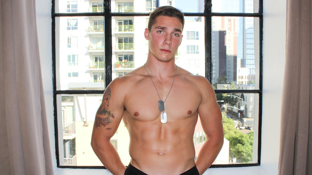 Spencer is his name and by the end of this scene his name will be engraved into your mind. His body is flawless and his build is what a true soldier in the field looks like. He drops his clothes with amazing speed revealing his beautiful cock which is thick with a sexy thick vein right down the middle. His veiny hands grab on his throbbing cock pulling his shaft up and down showing us every sexy inch of that meat. Spencer's balls glisten and bounce with each stroke of his cock. Spencer isn't shy and by the looks of it he is very comfortable in front of the camera. Sadly this beautiful stroking man has to come to an end but as he stands over our glass table stroking his cock he blasts a sexy thick load of cum all over it. Enjoy!