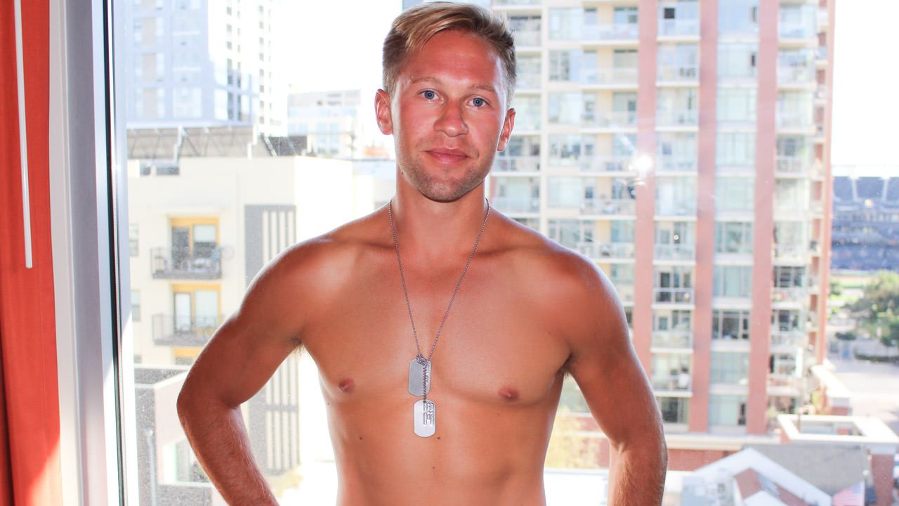 Once Claude leaves him to it, Tristan pulls of that 'ARMY' t-shirt and woweee! Tristan is very nicely chiseled. Riding those waves has sure paid off!